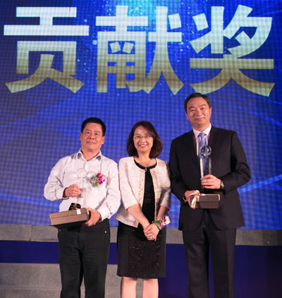 宣利平董事長(zhǎng)與杰出貢獻(xiàn)獎(jiǎng)獲得者合影