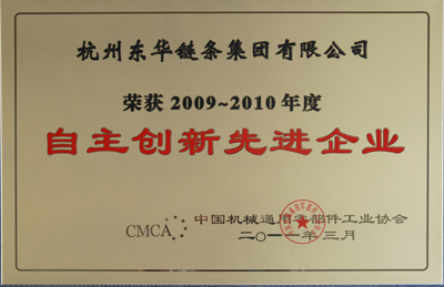 東華集團(tuán)自創(chuàng)建以來(lái),一直注重提高企業(yè)的自主創(chuàng)新能力。特別是近年在國(guó)內(nèi)鏈條領(lǐng)域中不斷自主創(chuàng)新,填補(bǔ)了多項(xiàng)國(guó)內(nèi)空白,為我國(guó)的鏈條事業(yè)做出了杰出貢獻(xiàn)。日前,中國(guó)機(jī)械通用零部件工業(yè)協(xié)會(huì)授予東華集團(tuán)“2009-2010年度自主創(chuàng)新先進(jìn)企業(yè)”榮譽(yù)稱號(hào),這是東華集團(tuán)繼2009年榮獲中國(guó)機(jī)械通用零部件工業(yè)協(xié)會(huì)授予“2007-2008年度自主創(chuàng)新先進(jìn)企業(yè)”榮譽(yù)稱號(hào)后再次獲此殊榮。
