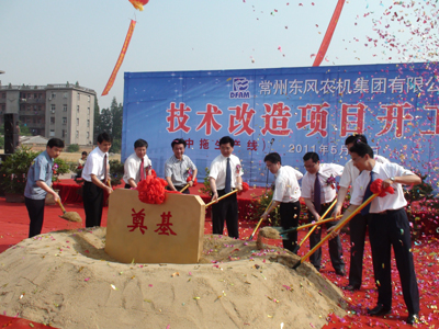 5月20日上午,常州東風農機集團有限公司 “月產6500臺輪拖零部件能力技改”等3個技改項目舉行奠基典禮,拉開了東風農機“十二五”新一輪大發(fā)展的序幕。鐘樓區(qū)委書記徐偉南、區(qū)長潘冬鈴、東風農機董事長宣碧華等領導出席了奠基典禮。
