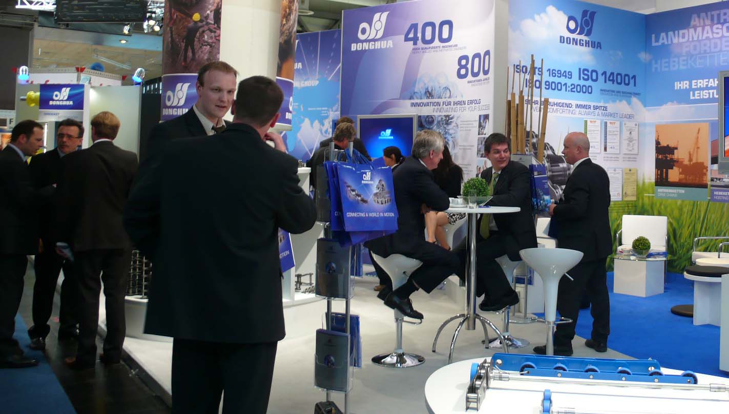 本屆展會是東華第一次在漢諾威工業博覽會參展,展廳面積100m2,展出了傳動鏈、輸送鏈、提升鏈及特種鏈等全系列產品。從常規產品到高附加值的汽車鏈,從單一的鏈條到鏈條、鏈輪的集成模塊全方位專業地顯示了東華強大的國際化的綜合實力。并重點推出“DONGHUA”自主品牌,標志著東華集團從訂單經營向品牌經營的轉變。