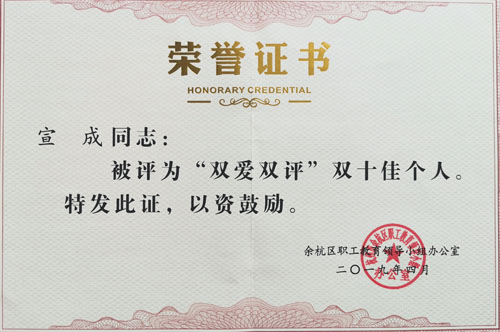 日前,在2019年余杭區(qū)勞動模范和模范集體暨職工創(chuàng)業(yè)創(chuàng)新推進(jìn)大會上,東華鏈條集團(tuán)被余杭區(qū)政府授予“余杭區(qū)模范集體”稱號;副董事長宣成被授予“雙愛雙評”雙十佳個人榮譽(yù)稱號。扶梯工程鏈?zhǔn)聵I(yè)部王興全被授予“雙愛雙評”雙十佳個人稱號。“徐長明鉗工技能大師工作室”被授予“勞模(工匠)示范創(chuàng)新工作室”稱號。