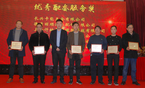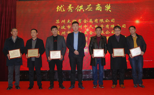 會上表彰了12“優秀供應商”和6“優秀配套服務獎”供應商。副董事長宣成向獲獎供應商代表頒獎并合影留念。