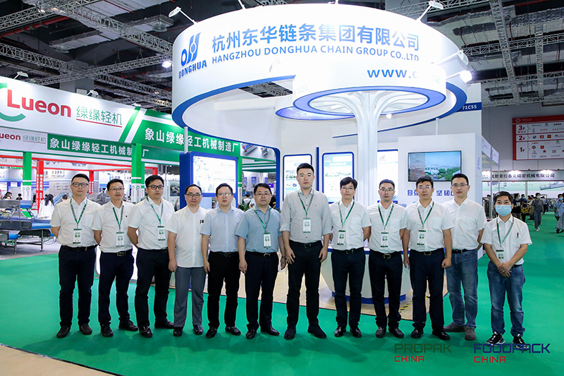 東華鏈條首次亮相食品與包裝機械展覽會,展出產品有香腸加工、牛奶灌裝、制面機械、印刷機械、食品加工、面餅烘干、水果挑選、啤酒輸送、物流輸送、包裝機械等應用場景鏈條。