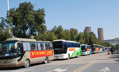 今年春節前夕,公司根據前期報名統計,共組織9輛大巴車送300多名員工返鄉過春節,主要發往安徽、河南、湖南、江西、湖北等多個員工家鄉聚集省市。每輛車上安派了乘車長,定時定點向公司報平安。同時為職工準備了暈車藥、飲用水和喜慶的春聯,為他們的返鄉之旅增添了不少溫暖。