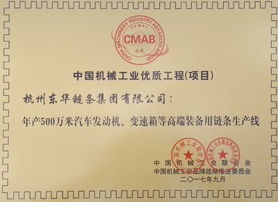 東華“年產500萬米發動機、變速箱等高端裝備用鏈條生產線”榮獲中國機械工業優質工程(項目)獎