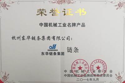 “東華”牌鏈條榮獲中國機械工業名牌產品稱號