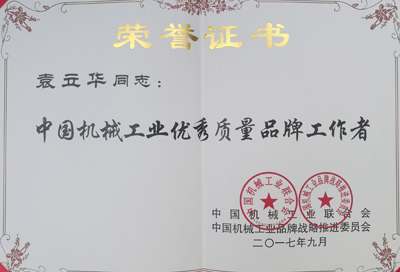 副總經理袁立華被授予“中國機械工業優秀質量品牌工作者”稱號