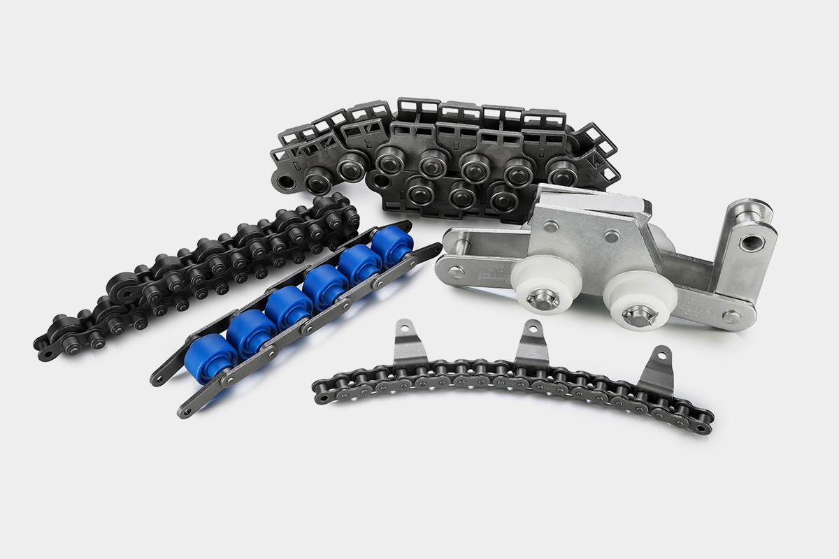 典型產品:短節距滾子鏈、雙節距輸送鏈、自由流動鏈、木材輸送鏈、長節距輸送鏈、肉類生產線輸送鏈、食品包裝機械用鏈條、空心銷軸鏈等及附件。