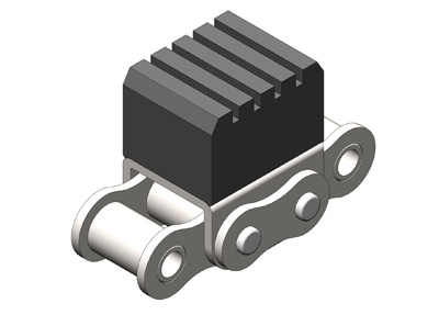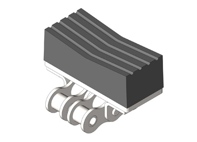 ● 橡膠附板鏈?zhǔn)窃跇?biāo)準(zhǔn)短節(jié)距精密滾子鏈作為基鏈的基礎(chǔ)上加裝橡膠頂板的鏈條,基鏈符合ISO、ASME/ANSI、DIN、JIS等標(biāo)準(zhǔn);