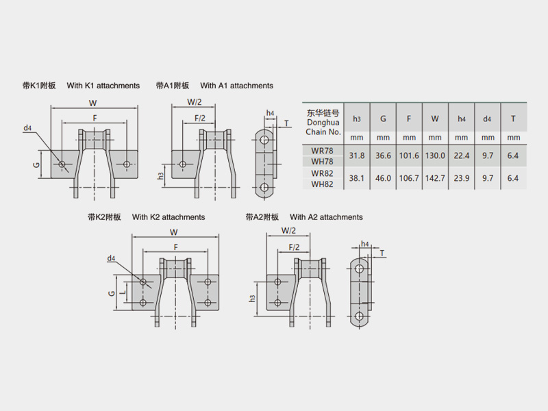 ● 工程用焊接結(jié)構(gòu)彎板鏈按照ASME B29.16M《鋼制焊接工程鏈、附件和鏈輪齒形》和ISO 6972《焊接結(jié)構(gòu)工程用彎板鏈、附件和鏈輪》設(shè)計(jì)和制造,有多種附件可供選擇,也可以按照用戶需求進(jìn)行定制開發(fā)。