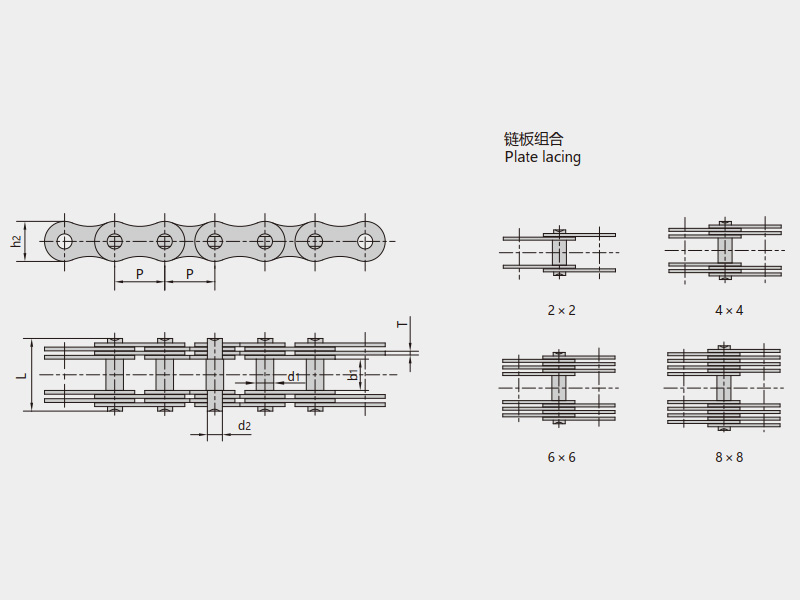 ● 曳引鏈除板式鏈外,還包括停車庫(kù)鏈條、多板銷軸鏈、無(wú)滾子提升鏈等鏈條,其中多板銷軸鏈符合DIN標(biāo)準(zhǔn),無(wú)滾子提升鏈在尺寸上基本與標(biāo)準(zhǔn)鏈相同。